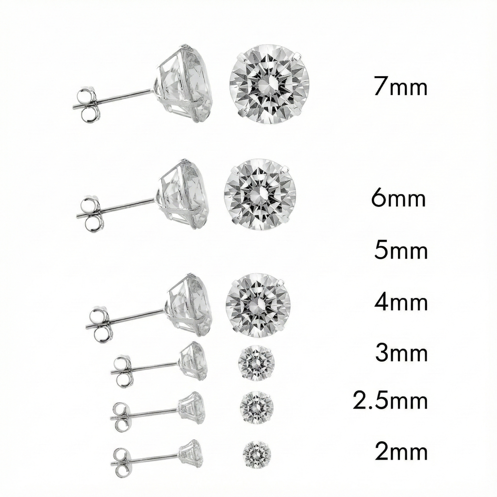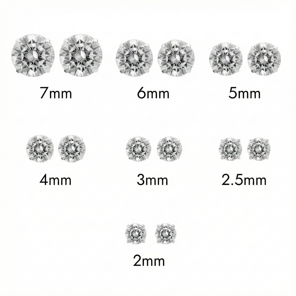 5 mm - 0,36 quilates cada uno 6 mm - 0,56 quilates cada uno 7 mm - 0,948 quilates cada uno |