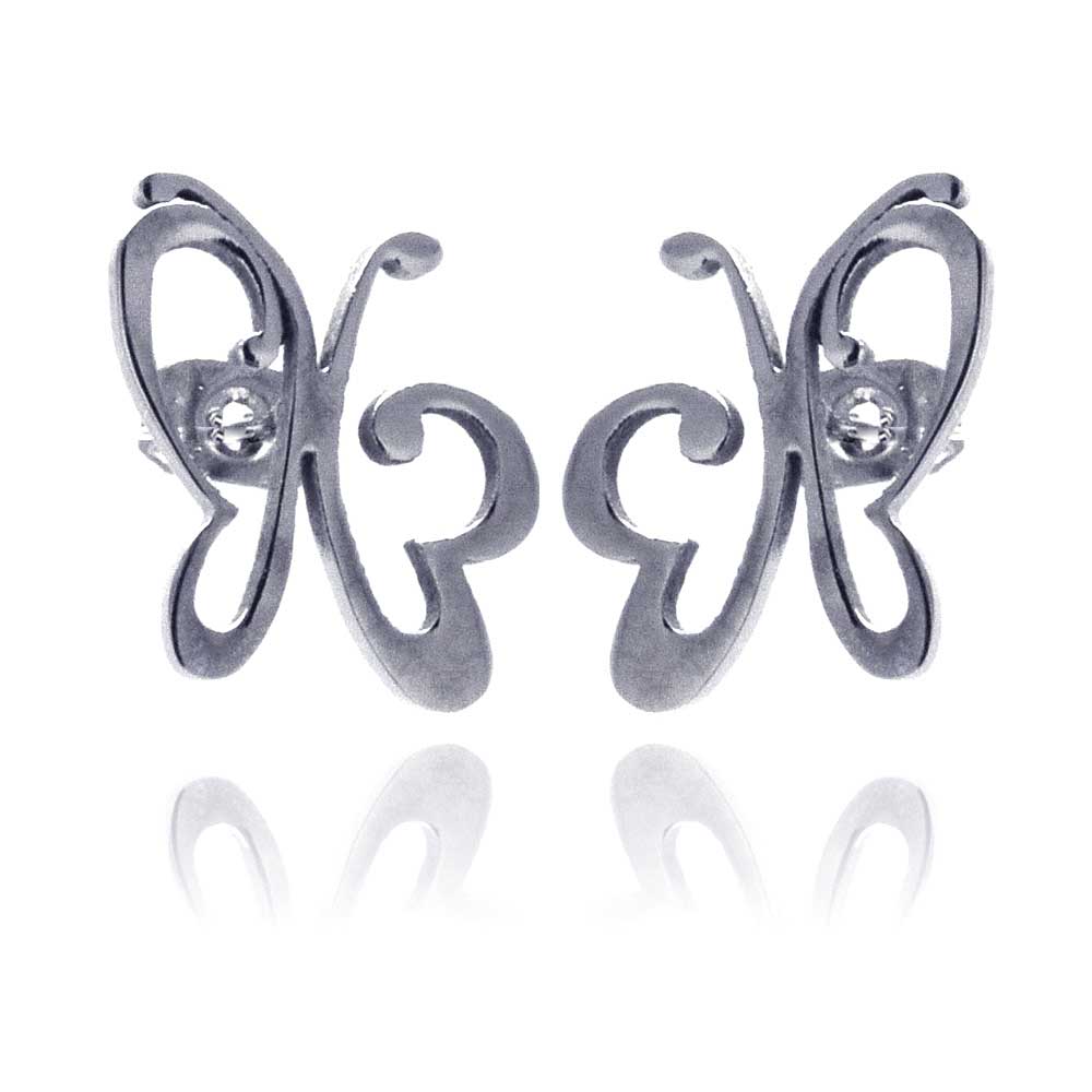 Rhodium Plated Stainless Steel Butterfly Stud Earrings