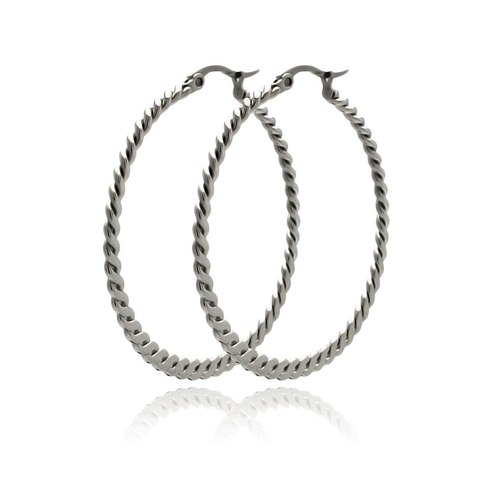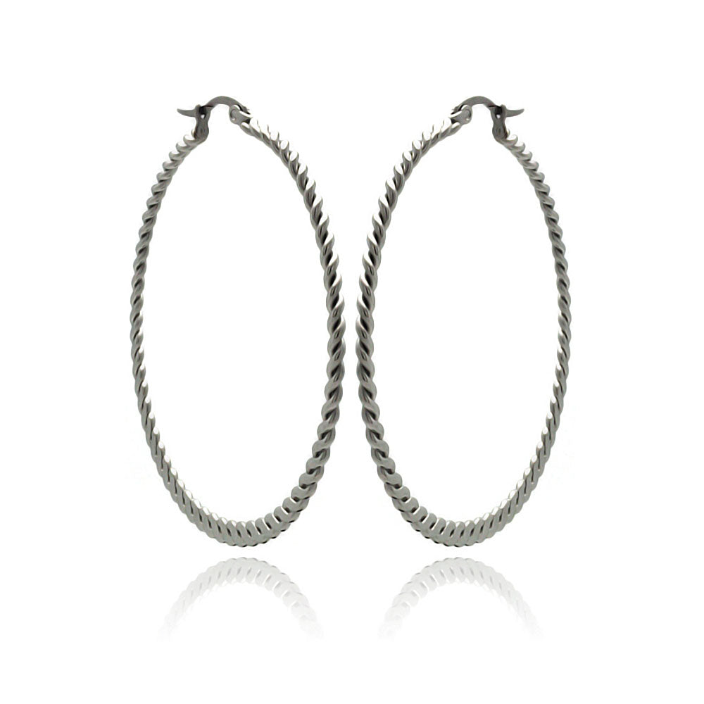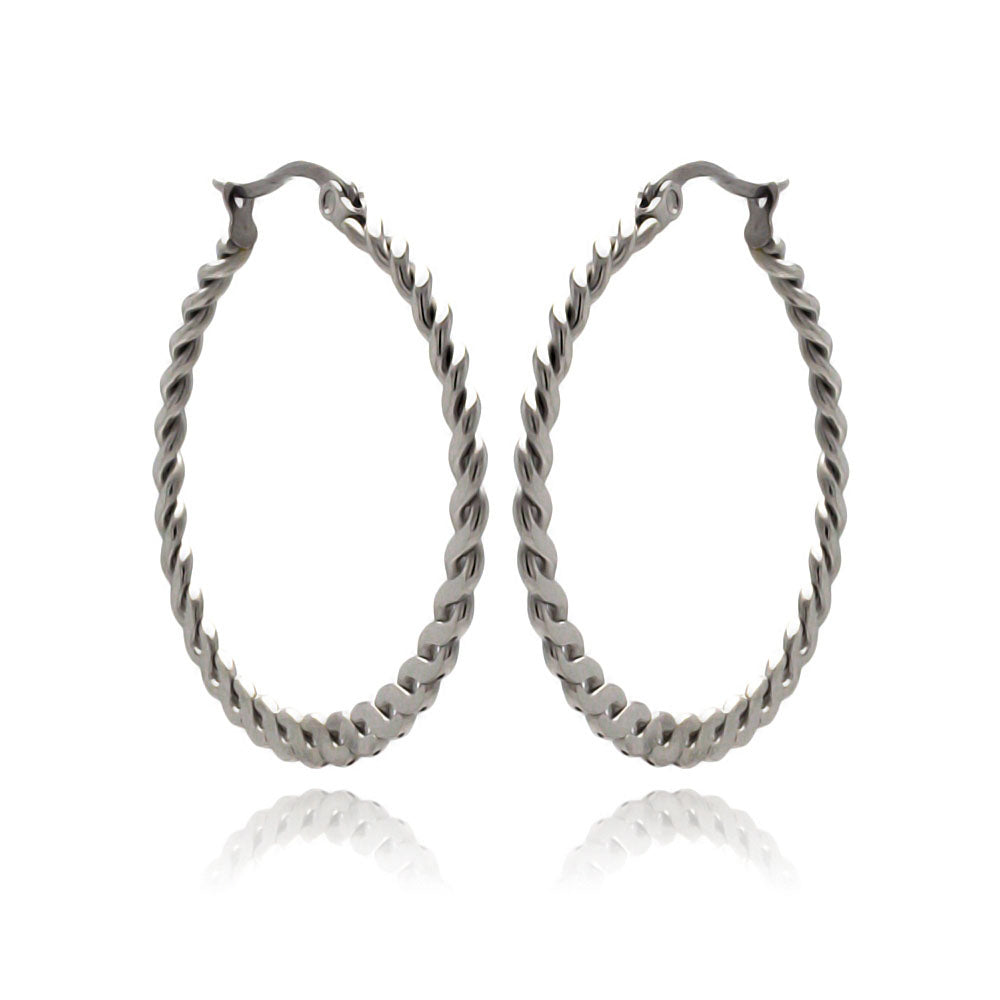Rhodium Plated Stainless Steel Flat Braid Hoop Earrings