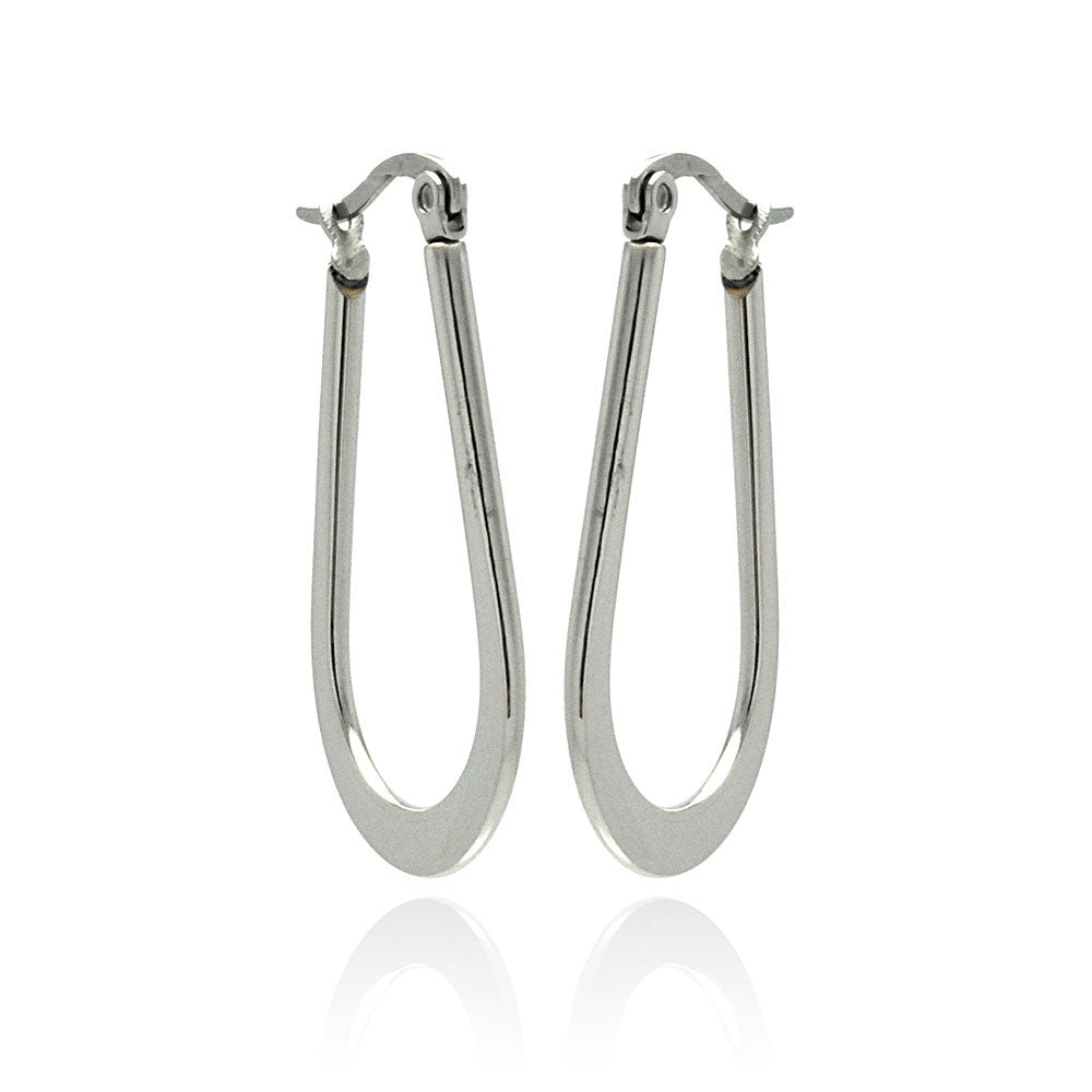 Rhodium Plated Stainless Steel "U" Hoop Earrings