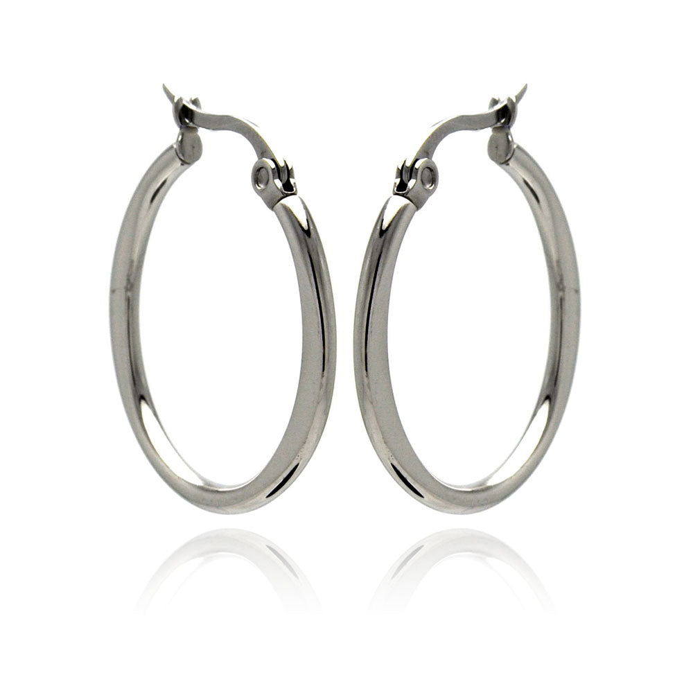 Rhodium Plated Stainless Steel Plain Flat Hoop Earrings