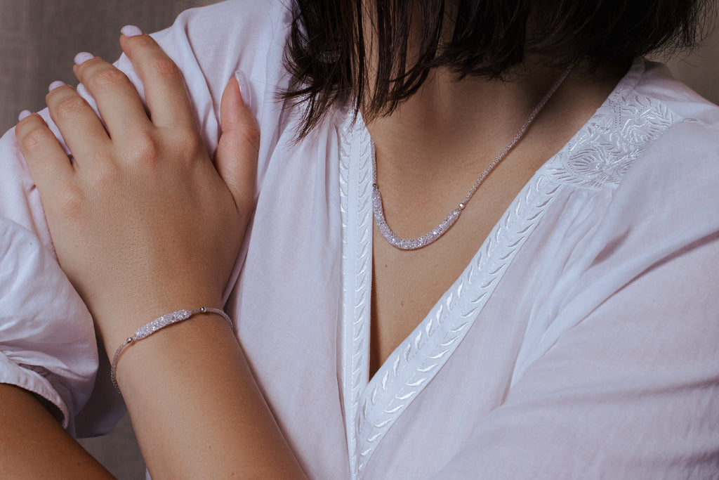 Este exquisito collar de malla con baño de rodio en plata 925 y relleno de circonita cúbica de ITN00024RH es una lujosa pieza de joyería elaborada con plata de ley y baño de rodio negro para un acabado elegante y atemporal. Con un delicado diseño de malla lleno de brillantes piedras CZ, este collar agregará un toque de sofisticación a cualquier look.