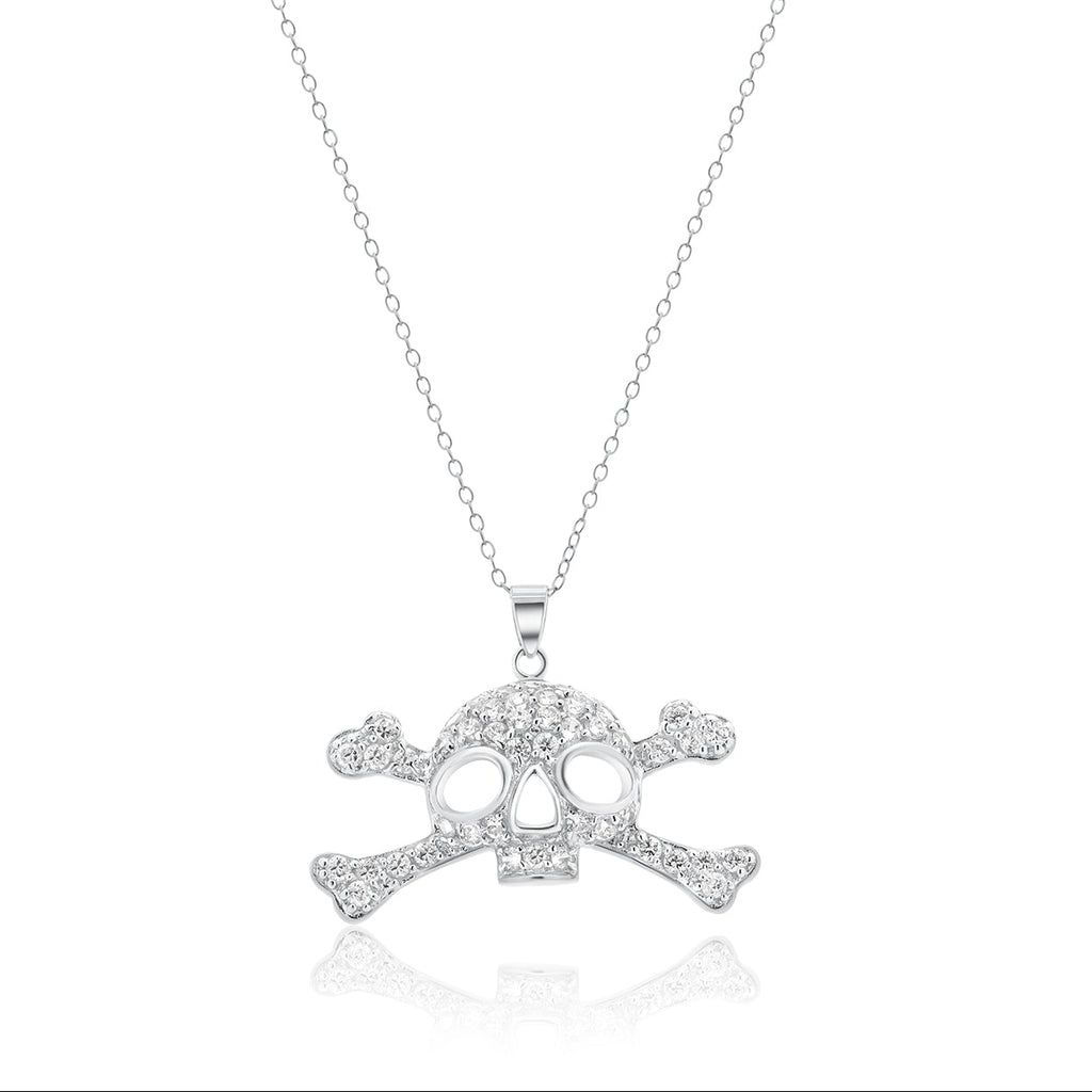 Venta al por mayor Collar con colgante de calavera chapado en rodio con circonita cúbica transparente de plata esterlina 925