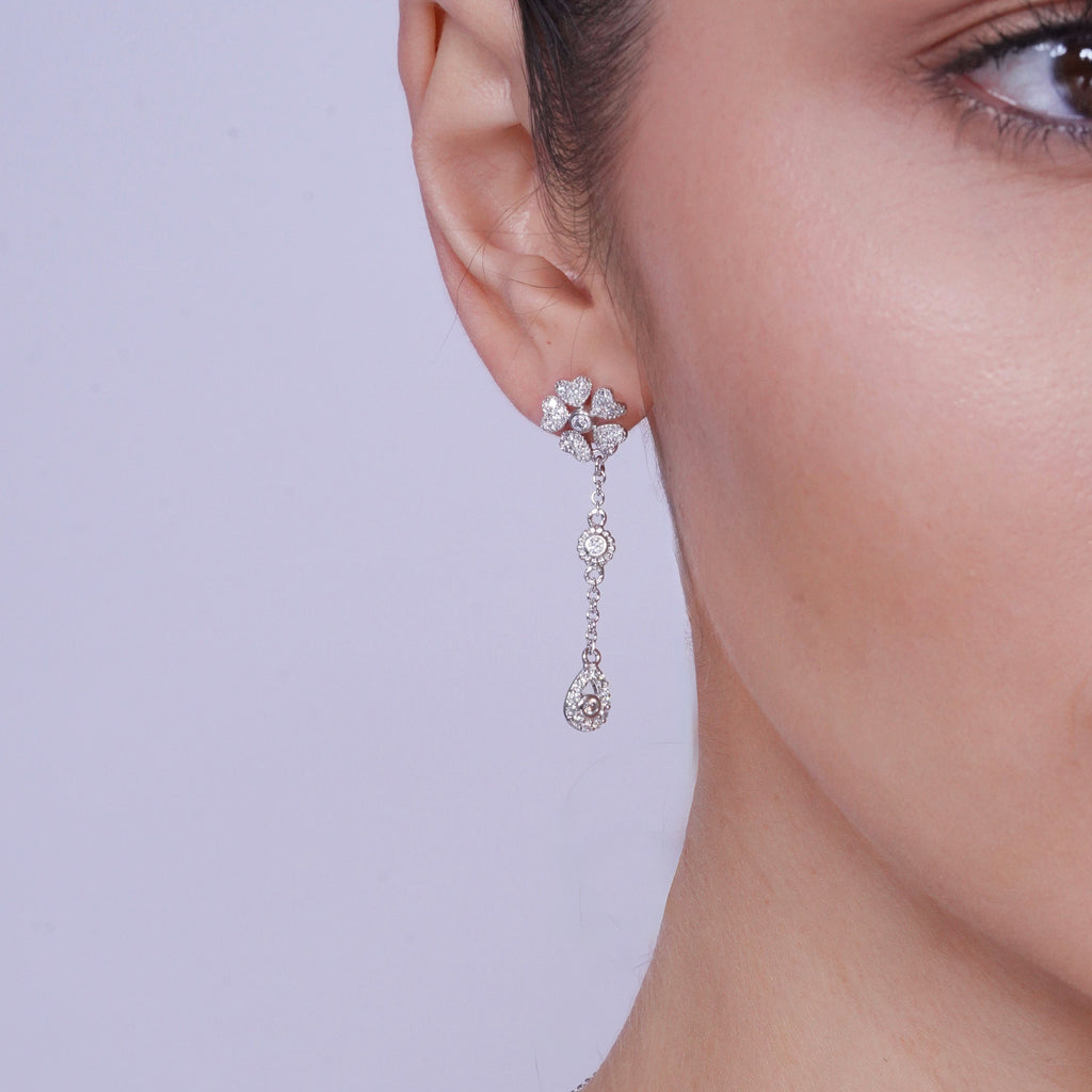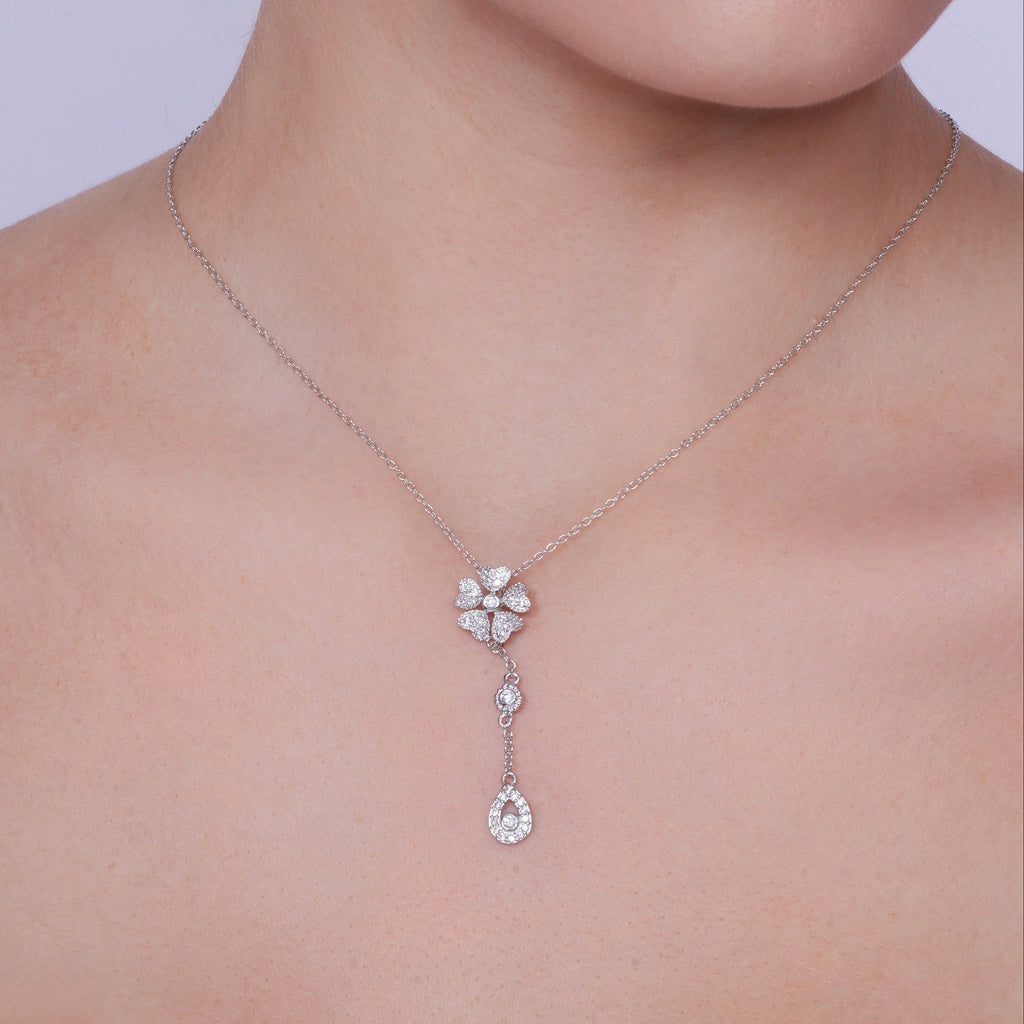 Conjunto de pendientes colgantes de flor de lágrima transparente con circonita cúbica en plata de ley 925 rodiada al por mayor