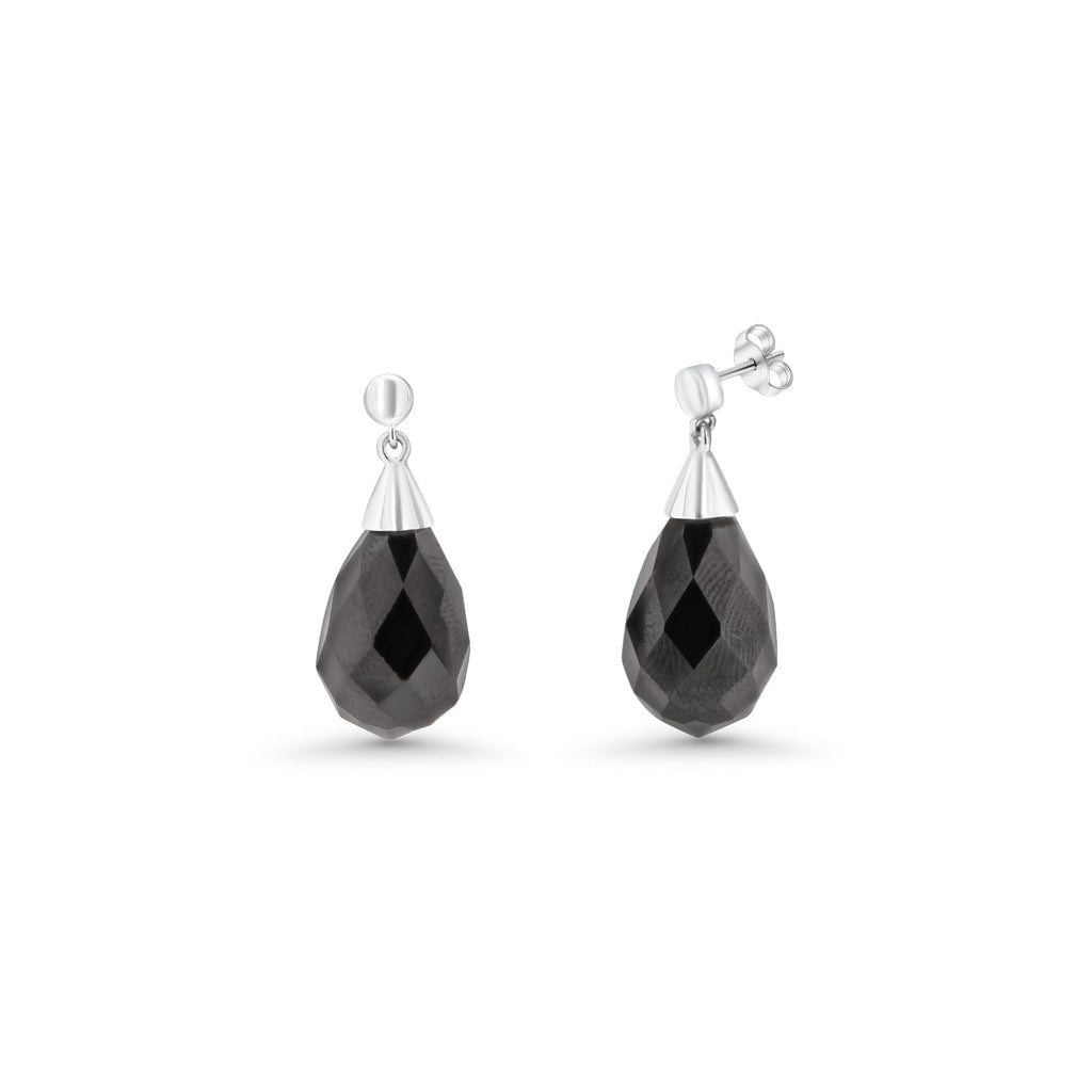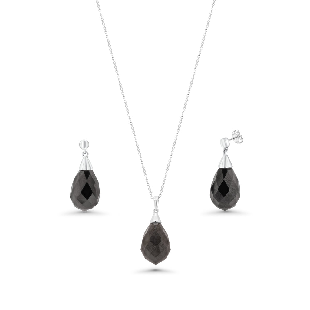Venta al por mayor de plata de ley 925 chapada en rodio, lágrima cuadrada, circonita negra, aretes colgantes y conjunto de collar