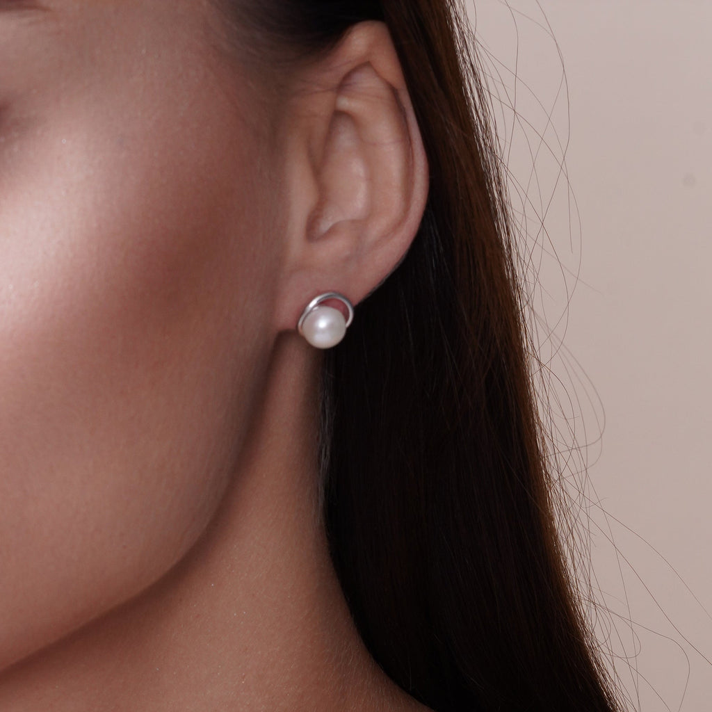 Venta al por mayor de perlas sintéticas redondas de plata esterlina 925 con juego de circonitas