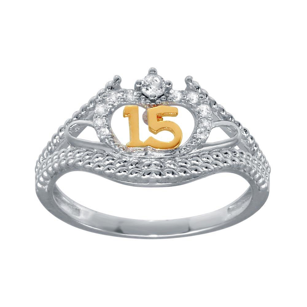 Anillo de plata de ley con circonita cúbica de dos tonos y flor de quinceañera al por mayor
