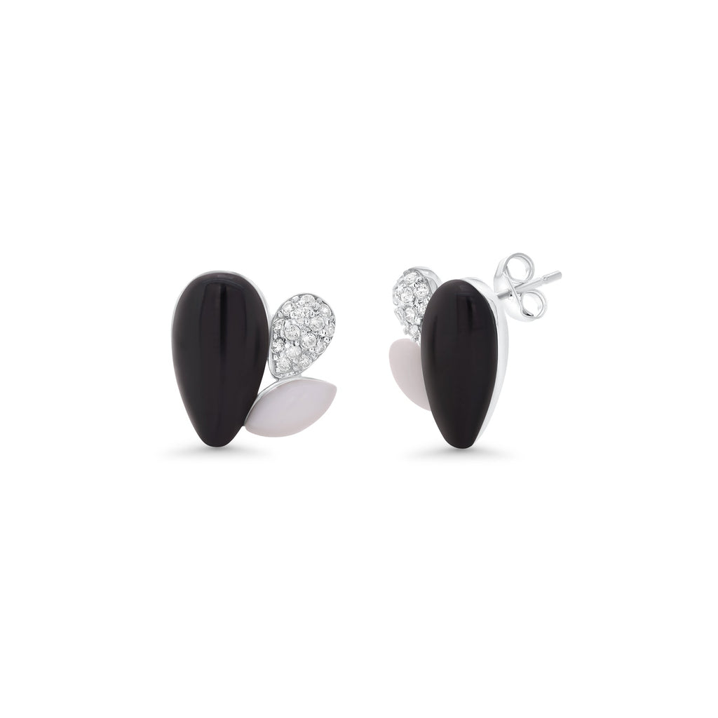 Wholesale Sterling Silver 925 Rhodium Plated Black Onyx White Enamel Clear Flower CZ Stud Earring and Necklace Set