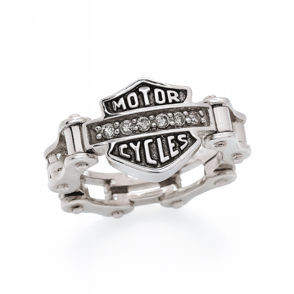 Crafted from 925 sterling silver with a durable rhodium plating, this biker ring combines strength with refined elegance. The detailed design is enhanced by sparkling cubic zirconia stones, adding a bold yet sophisticated touch. Ideal for those seeking distinctive jewelry that embodies both resilience and style, this ring offers lasting shine and a standout look for any occasion.
