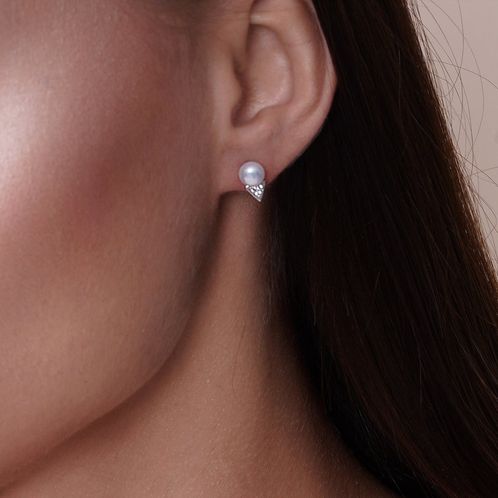 Wholesale Sterling Silver 925 Rhodium Plated Triangle and Synthetic Pearl Pendant Necklace and Stud Earrings Set