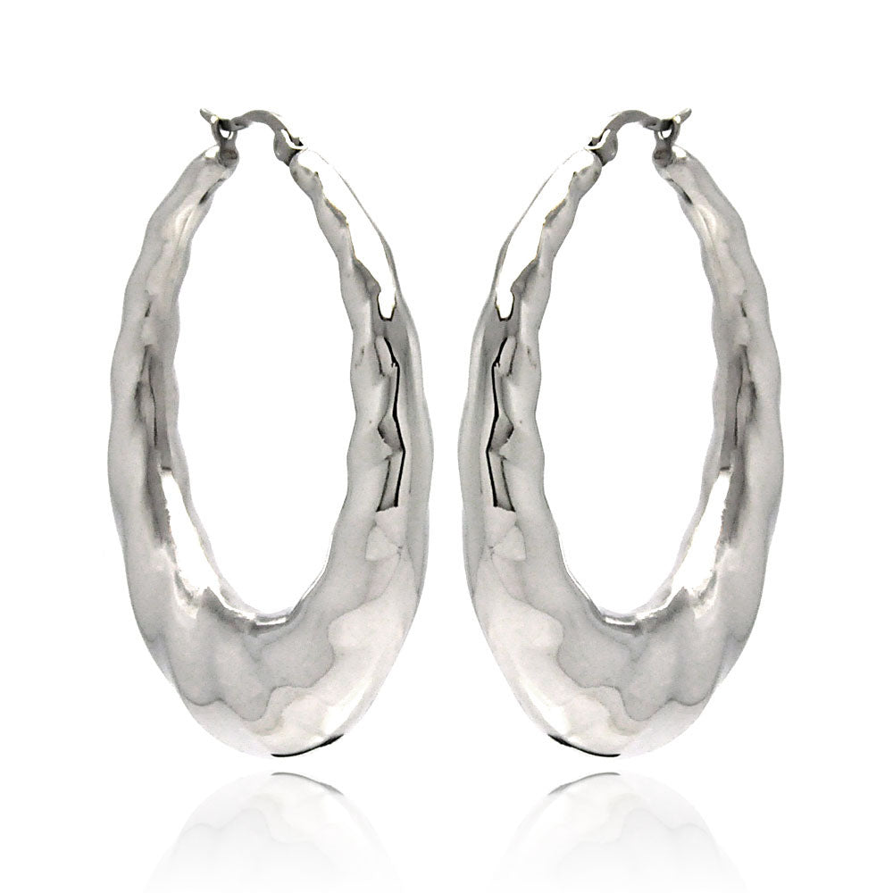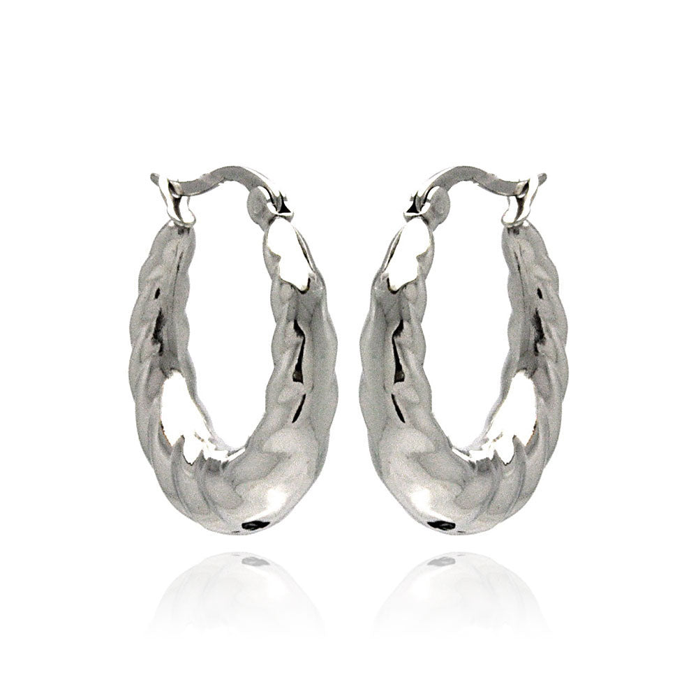Rhodium Plated Stainless Steel Twisted Puffed Hoop Earrings