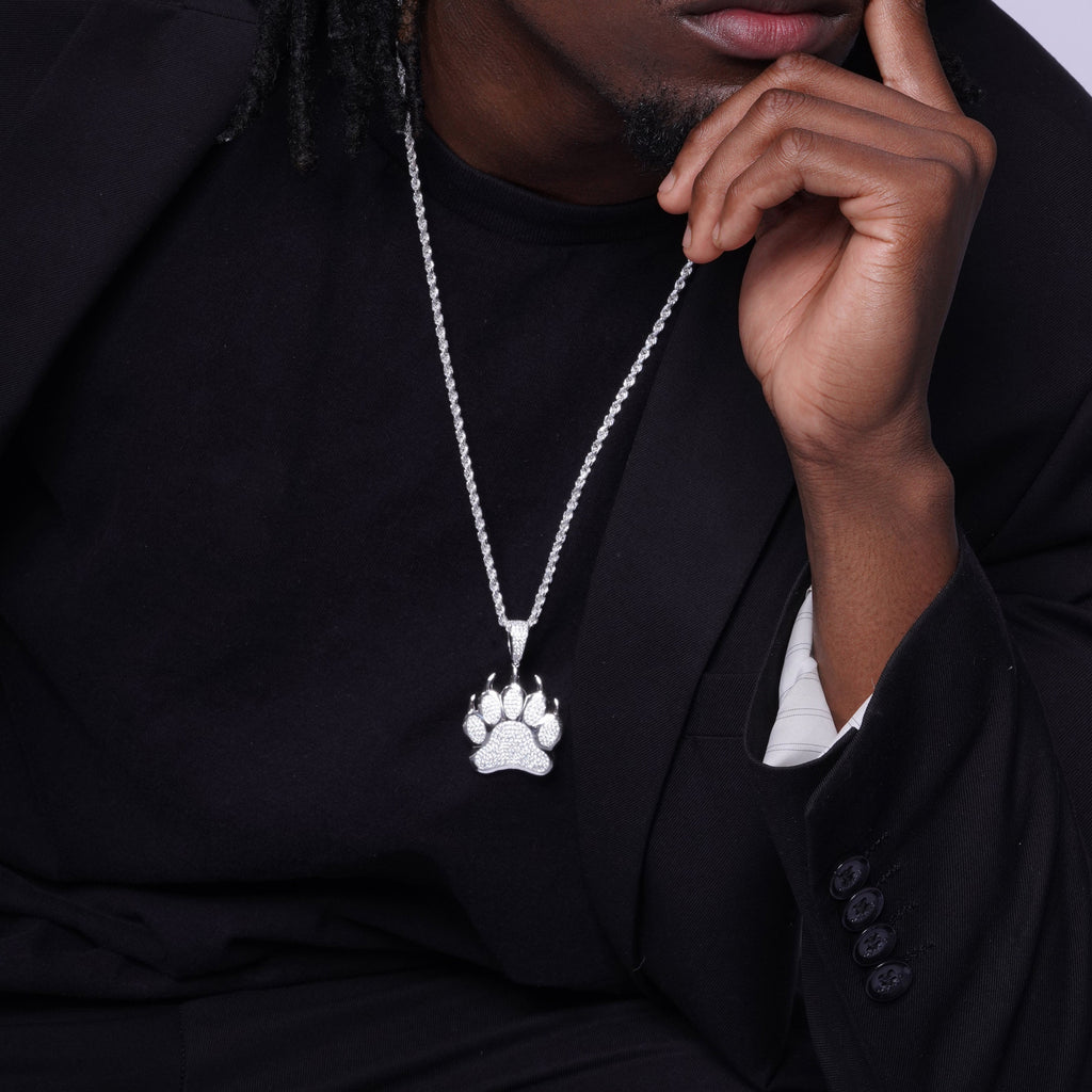 Wholesale Sterling Rhodium Plated 925 Sterling Silver Bear Paw Hip Hop Pendant