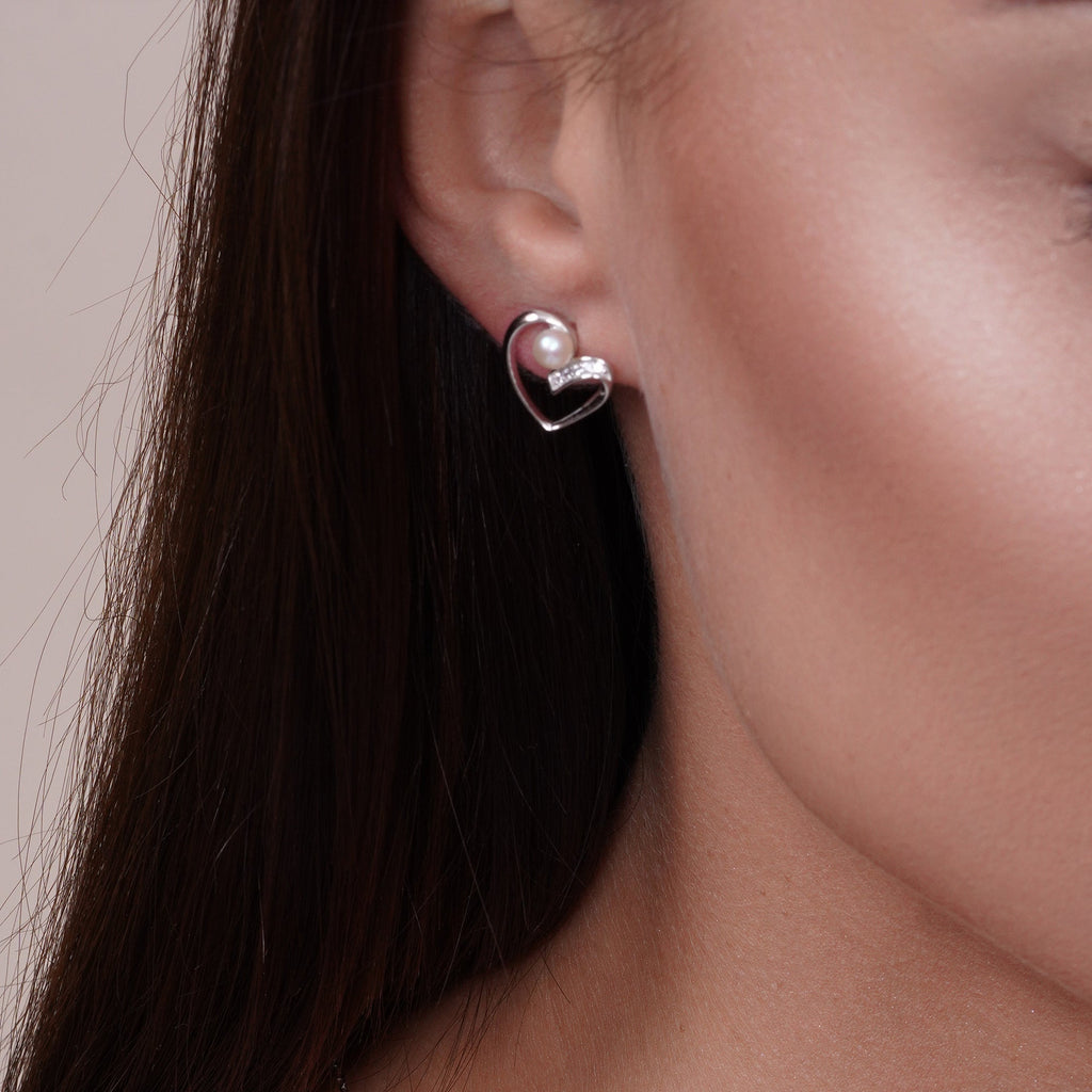 Wholesale Sterling Rhodium Plated 925 Sterling Silver Open Heart Pearl Earring and Pendant Set