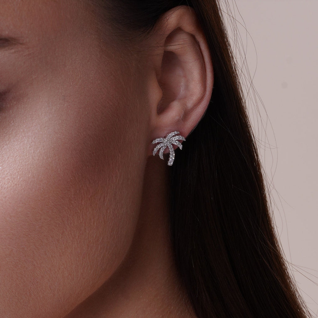 Wholesale Sterling Rhodium Plated 925 Sterling Silver Palm Tree CZ Earring and Pendant Set