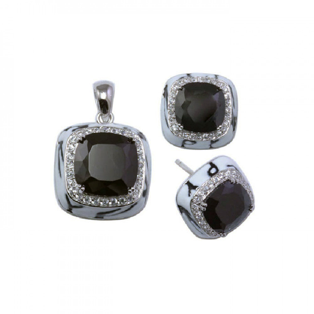 Wholesale Sterling Silver 925 Rhodium Plated Square Black CZ Stud Earring and Necklace Set