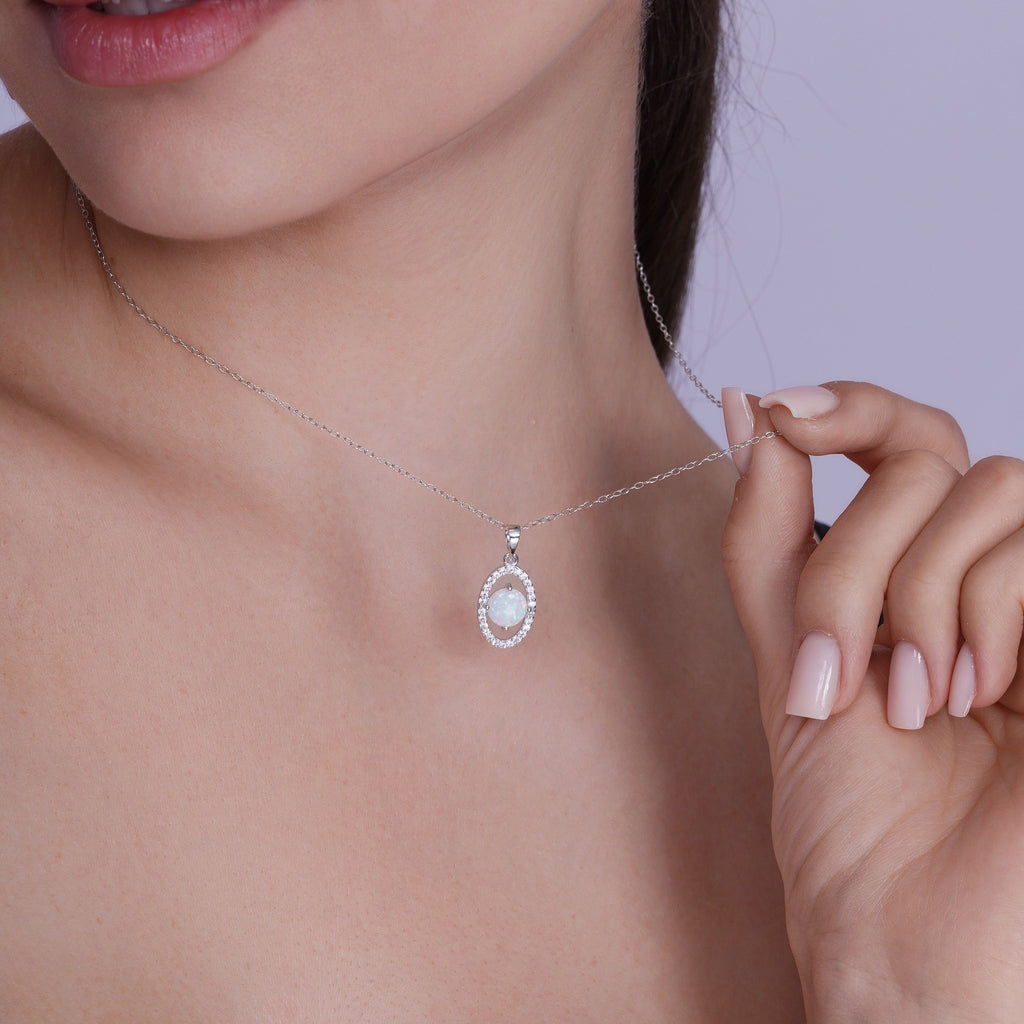 Wholesale Sterling Silver 925 Rhodium Plated Synthetic Opal Center Open Oval CZ Set
