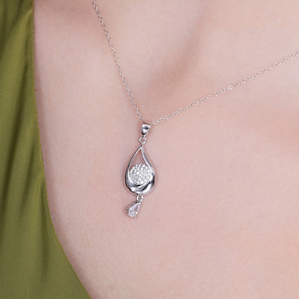 Wholesale Sterling Silver 925 Rhodium Plated Teardrop Clear CZ Dangling Stud Earring and Dangling Necklace Set